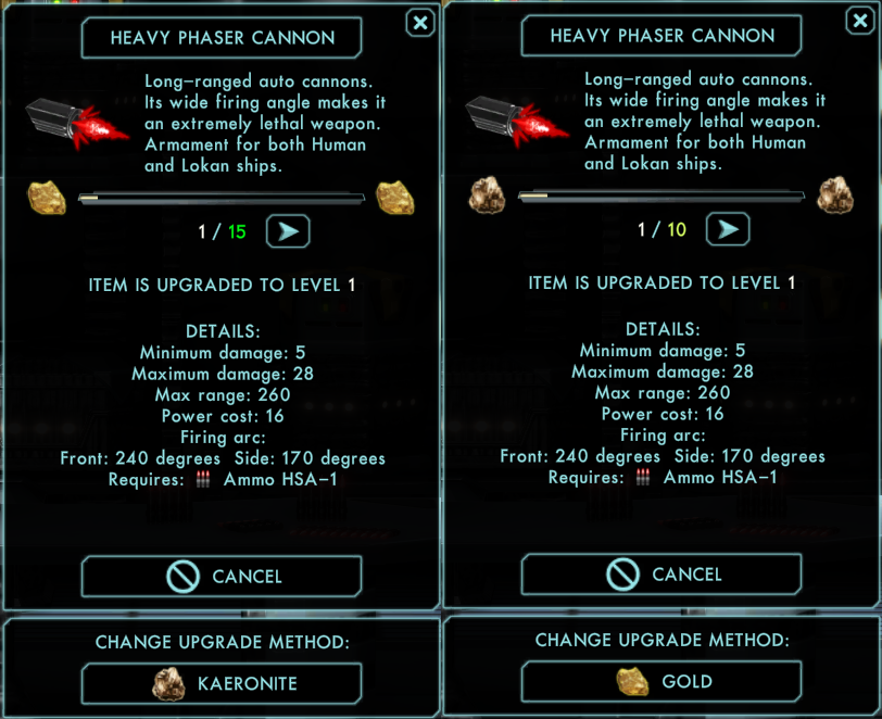 The introduction of kaeronite also changed the appearance of upgrade panel, which now has two options: